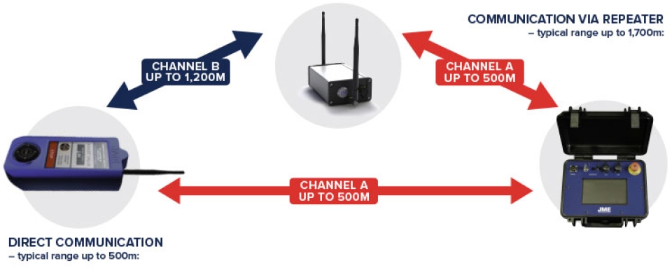 A JME agora oferece um sistema sem fio para toda a linha PXB Betatron. Esse sistema é compatível tanto com o painel de controle com fio tradicional quanto com o novo controle remoto sem fio. Quando utilizado com um repetidor de rádio JME, o alcance da operação pode chegar a até 1,7 km. Isso aumenta significativamente a segurança do operador e amplia as possibilidades de aplicação do Betatron em diferentes ambientes de inspeção.