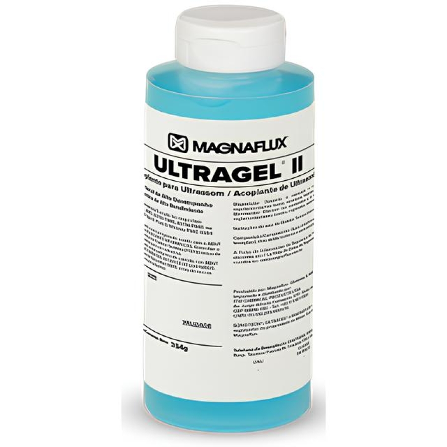 Ultragel II é um gel acoplante versátil, ideal para inspeções gerais por ultrassom. Com excelente viscosidade e aderência, oferece ótima transmissão acústica mesmo em superfícies inclinadas ou irregulares. O tubo possui 354 ml . O Acoplante possui faixa de temperatura de - 23 C a 99 C. O Ultragel II é aprovado pela Pratt & Whitney e cumpre as especificações de grau nuclear para níveis de halogênio e enxofre.